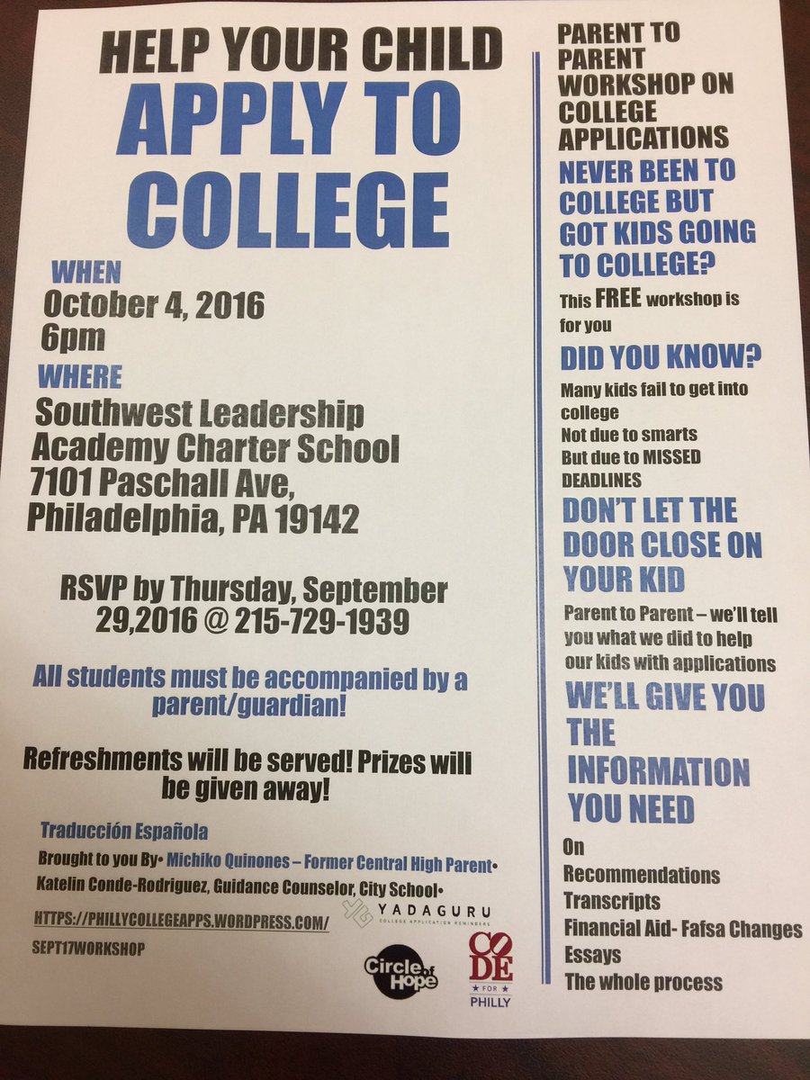 The workshop, to take place on Tuesday, October 4th at 6pm, is to help alumni of the K-8 charter school who are ready to apply for college use YadaGuru to assist in the process. This Parent to Parent workshop will take place at the school, located at 7101 Paschall Street.